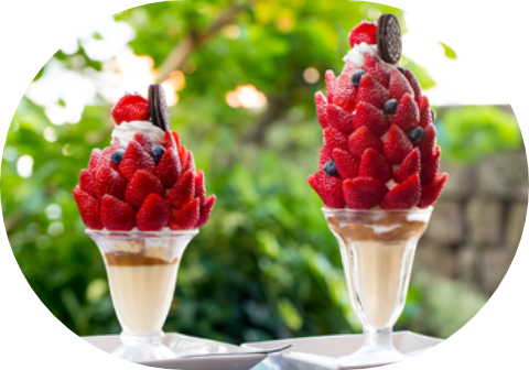 県外からも多くの方が訪れる大人気の喫茶店です。旬のフルーツを使ったパフェやサンドイッチが美味しく、四季折々楽しむことができます。