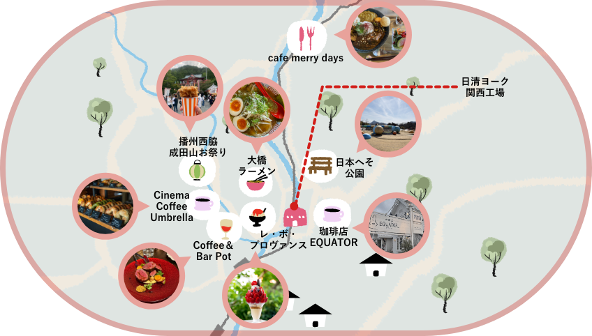 毎年夏に盆踊り大会が開かれ、にぎわうお祭り。やぐらや屋台、花火が楽しめる西脇の夏の風物詩。同期と訪れた思い出の場所です。